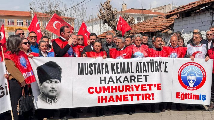 Cumhuriyetçi Öğretmeni Hedef Gösterenlere Teslim Olmayacağız! Eğitim-İş Sendikası yetkilileri, Turgutlu’da Atatürk’e hakaret ettiği iddiasıyla bir öğretmenin tutuklandığını, ardından Cumhuriyetçi bir eğitim emekçisinin hedef haline